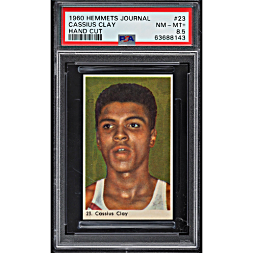 The Swedish magazine hand-cut rookie card of boxing legend Muhammad Ali. This PSA 8.5 graded copy is part of a population of 4 with just 12 copies graded higher.