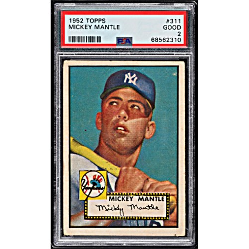 A freshly graded and eye appealing PSA 2 of one of the most iconic sports cards ever made. The 1952 Topps Mickey Mantle is among the most sought-after cards in the collecting world, and this is a beautiful low-grade example.