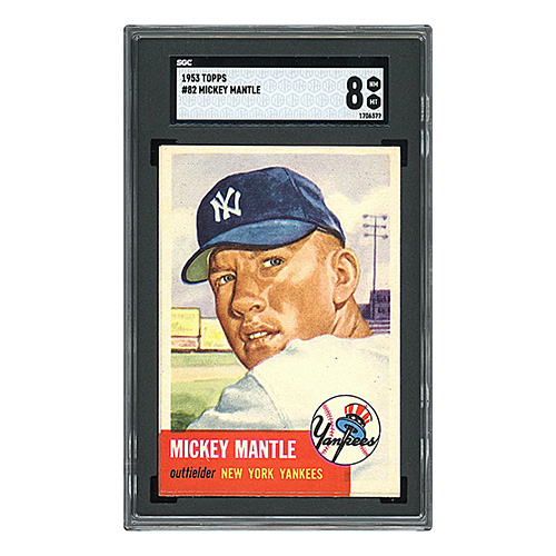 The crown jewel of the 1953 Topps set, this impeccable Mickey Mantle is graded an SGC 8 and is a pop 15 with just 10 higher – placing it within the top 2% of all SGC graded examples.