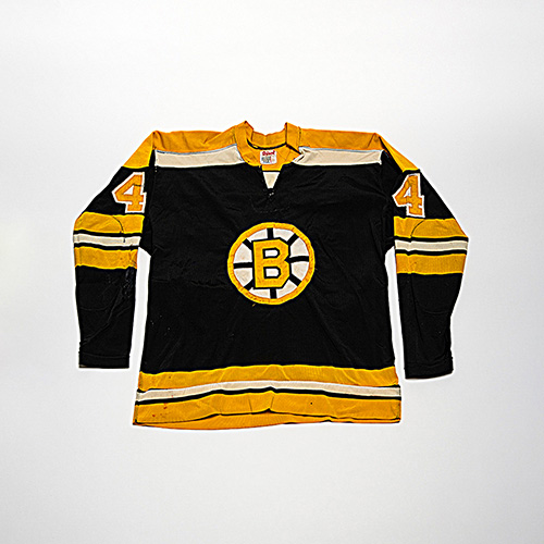 An exceptional example of game usage, this Boston Bruins sweater donned by the inimitable Bobby Orr is photomatched to a pair of images during the 1970-71 season in which Orr won the Hart Memorial, James Norris Awards, and selected to the NHL First All-Star Team.
