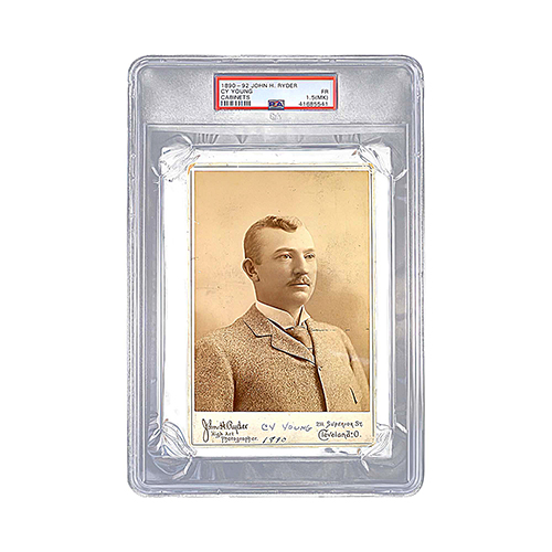 The only known example of Hall of Famer Cy Young’s rookie car. This late 1800s cabinet card remains in superb condition, given its 130-year lifespan and is a true artifact of baseball’s formative years.
