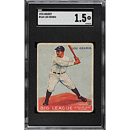 A key Lou Gehrig issue from the popular 1933 Goudey set. This specific card boasts nice coloring and centering despite its SGC 1.5 grade. Collectable has an SGC 9 graded copy coming soon.