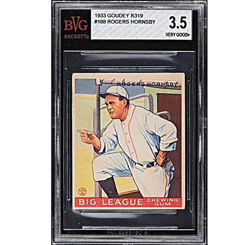 Key late career card of Cardinals Hall of Famer Rogers Hornsby. One of the best hitters of the era, Hornsby batted over .400 in 3 separate seasons.