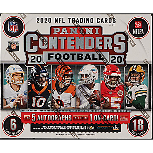 The Panini Contenders brand has become a staple of the football card hobby. This box offers the opportunity to pull autographed rookie cards of Joe Burrow and Justin Herbert.