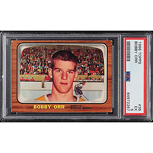 One of the most popular and important rookie cards in hockey. Bobby Orr is considered among the greatest players of all time, and his 1966 Topps rookie is one of the cornerstones of the hockey hobby.