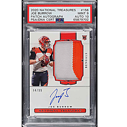 2020 National Treasures Joe Burrow Rookie Patch Autograph /99 PSA 9
