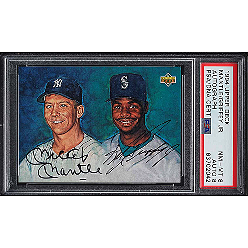 1994 Upper Deck Mickey Mantle Ken Griffey Jr. Autograph PSA 8