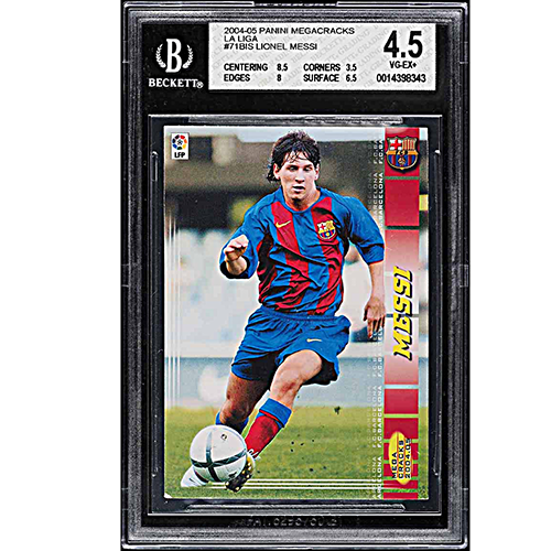 The most iconic Lionel Messi rookie card. Having been produced in Spain in the mid-2000s, this card can be tough to find in top grades. Corner and surface wear hold this card at the BGS 4.5 grade. Collectable is home to a PSA 9 copy.
