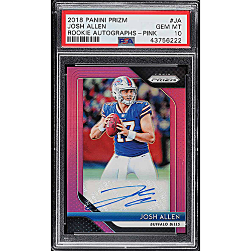 Five weeks into the NFL season, Josh Allen has emerged as the frontrunner for the MVP award. The Bills are 4-1, and Allen leads the league in passing yards. This Pink Prizms autograph is a short printed rookie card from one of the most popular sets in the hobby.