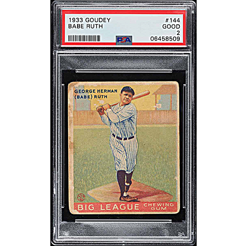 One of the most iconic Babe Ruth issues. The “Sultan of Swat” is shown taking a practice swing in front of a colorful field background in this Big League Chewing Gum card. Collectable has an SGC 8 graded copy currently trading on the secondary market.
