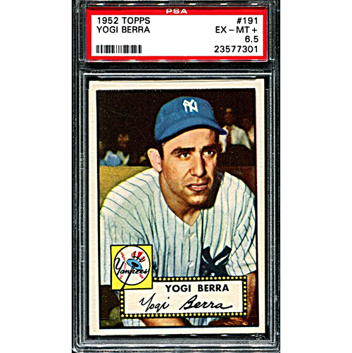 1952 Topps is among the most iconic sets in the entire sports card hobby, due in large part to the Mickey Mantle card. This PSA 6.5 graded card of Mantle’s Hall of Fame teammate Yogi Berra presents a great option for Yankee or baseball history collectors.