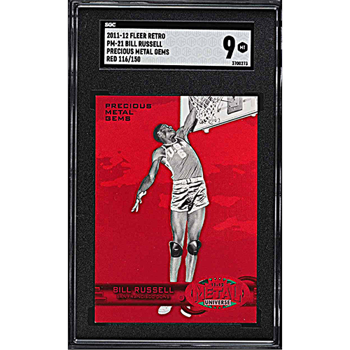 In 2011, Fleer brought back the PMG design and decided to include players who appeared prior to the original 1990s releases of the set. Bill Russell, one of the NBA’s greatest legends, made an appearance in the checklist. This SGC 9 graded red PMG features Russell in his San Francisco Dons uniform.