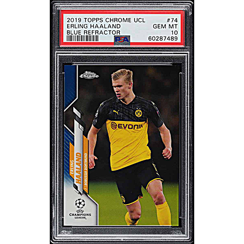 2019 Topps Chrome UEFA Blue Refractor Erling Haaland Rookie /150 PSA 10