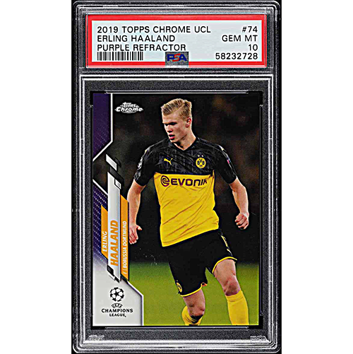 2019 Topps Chrome UEFA Purple Refractor Erling Haaland Rookie /250 PSA 10