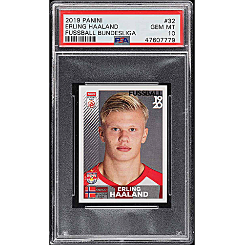 Stickers have long been the primary collecting medium for soccer product. Haaland made his first Panini sticker appearance on this Austrian Bundesliga issue. In PSA 10 condition, this sticker is part of a population of 452.