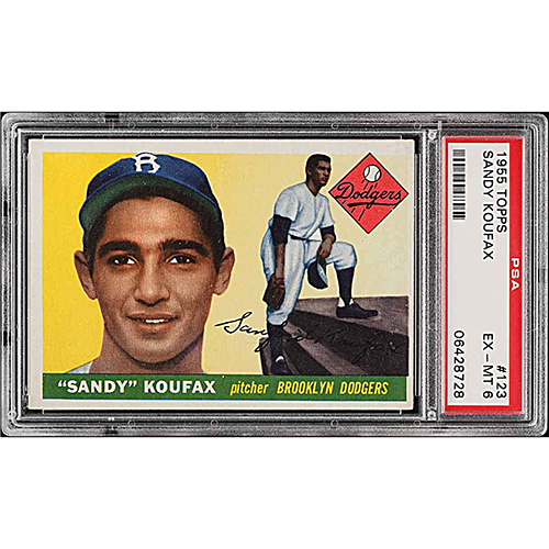 One of the most sought-after cards in the iconic 1955 Topps set. Sandy Koufax was not only a Hall of Famer, he also widely regarded as one of the best pitchers in baseball history. Collectable has a PSA 8 and a PSA 9 currently trading on the secondary market.