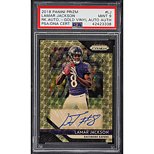 2018 Panini Prizm Gold Vinyl Lamar Jackson Rookie Autograph 2/2 PSA 9