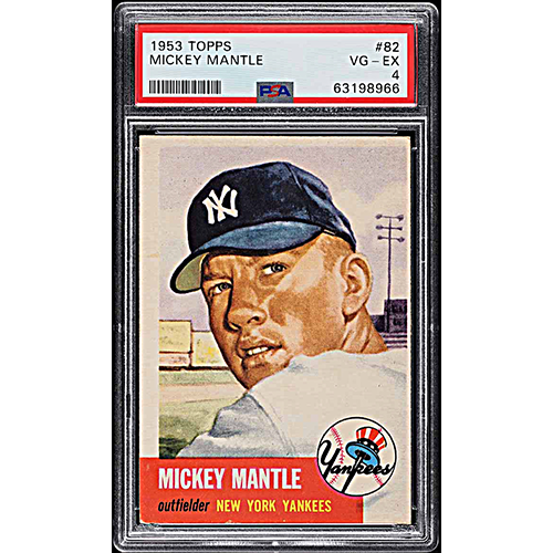 One of the most eye appealing Topps cards for Yankees Hall of Famer Mickey Mantle. Collectable sold a PSA 10 copy for $3,100,000 last July and is currently hosting a PSA 8.
