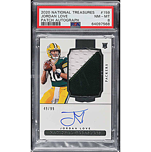 2020 National Treasures Jordan Love Rookie Patch Autograph /99 PSA 8