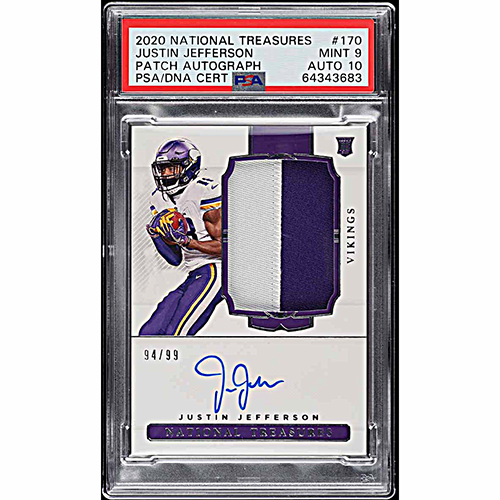 2020 National Treasures Justin Jefferson Rookie Patch Autograph /99 PSA 9