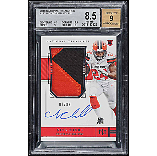 2018 National Treasures Nick Chubb Rookie Patch Autograph /99 BGS 8.5