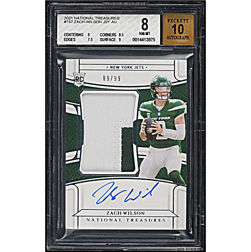 2021 National Treasures Zach Wilson Rookie Patch Autograph /99 BGS 8