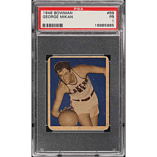 Key vintage basketball rookie card of Hall of Famer George Mikan. Despite this copy receiving a PSA 1 grade, there are only 313 examples graded higher. Collectable is home to a PSA 7.