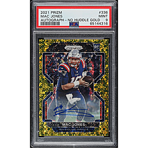 2021 Panini Prizm No Huddle Gold Mac Jones Rookie Autograph /10 PSA 9