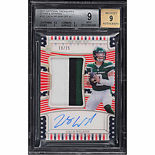 2021 National Treasures Stars & Stripes Zach Wilson Rookie Patch Autograph /25 BGS 9